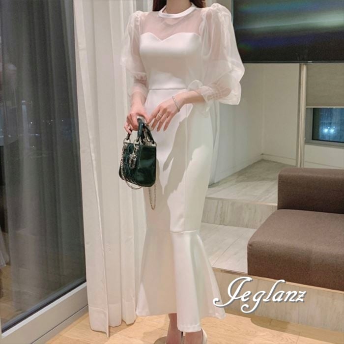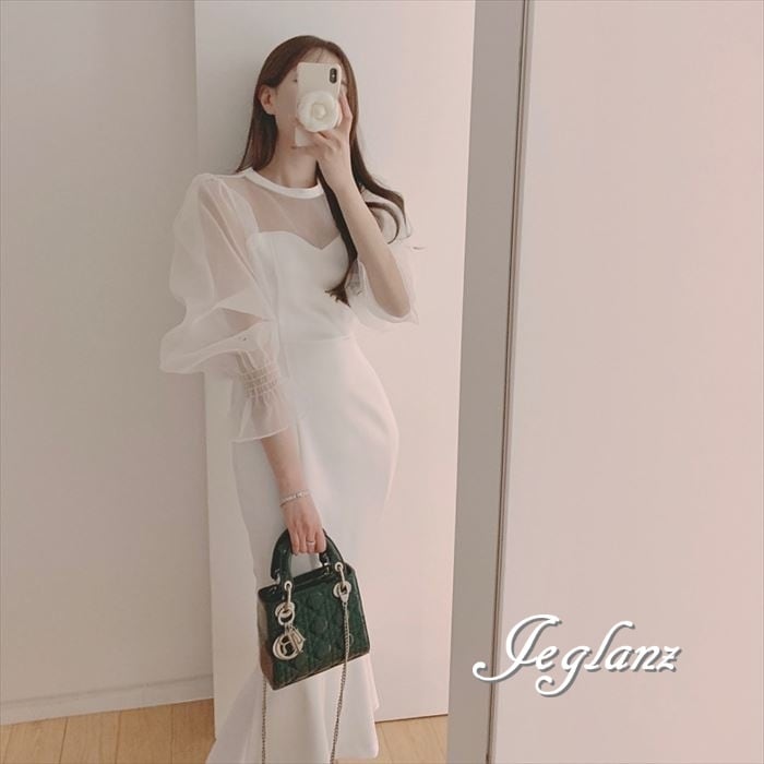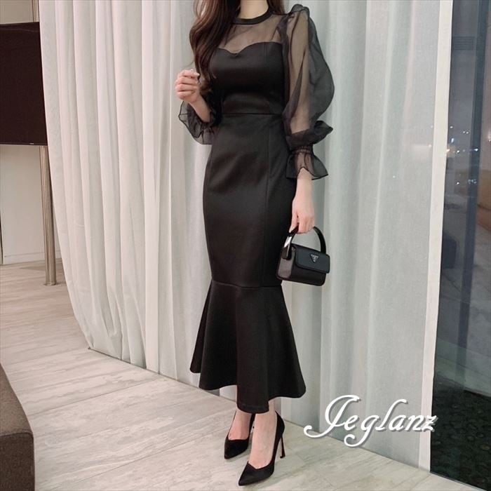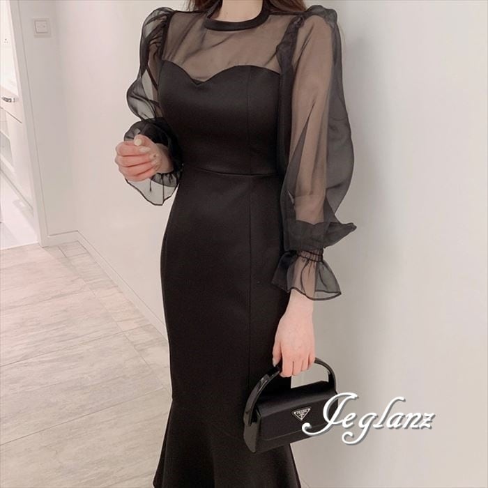 パーティドレス 結婚式 ワンピース 透け感 ティアード マーメイド ♪(M0050)ζ☆