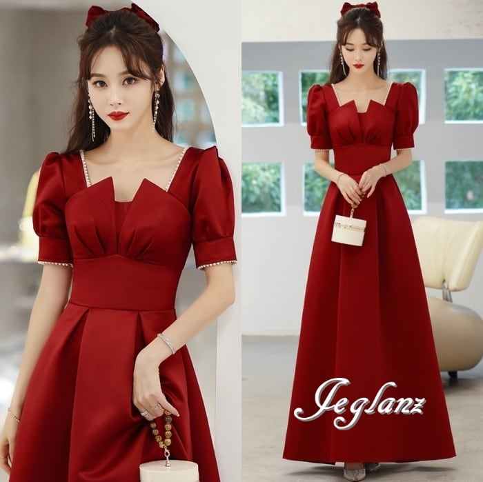 パーティドレス ワンピース パール付き ネック ミディ/マキシ ♪(Z4794)★ ζ