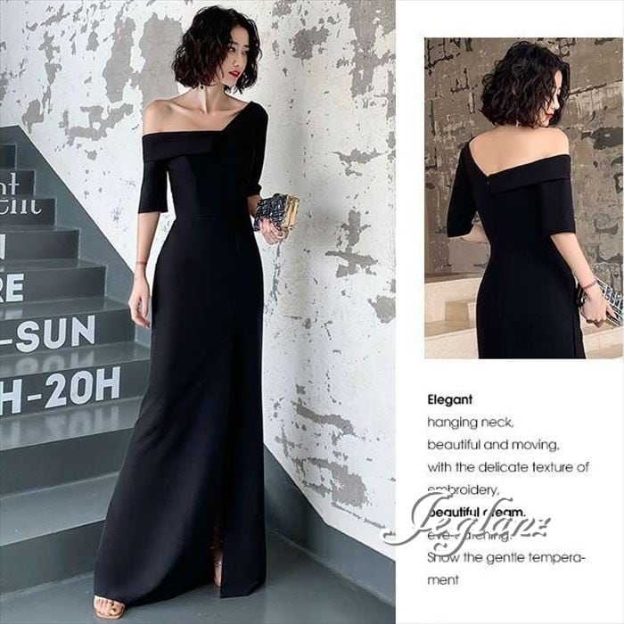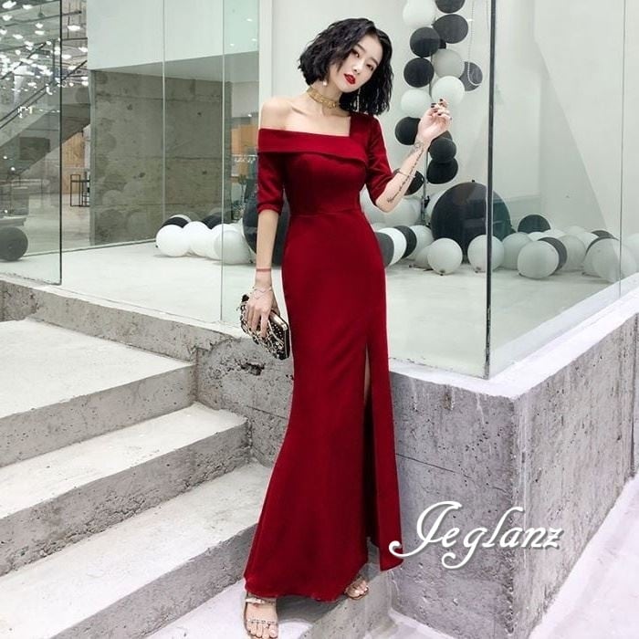 2色 パーティ イブニングドレス ワンショル ディープ スリット 肌見せ ♪ (Z3212)★ ζ