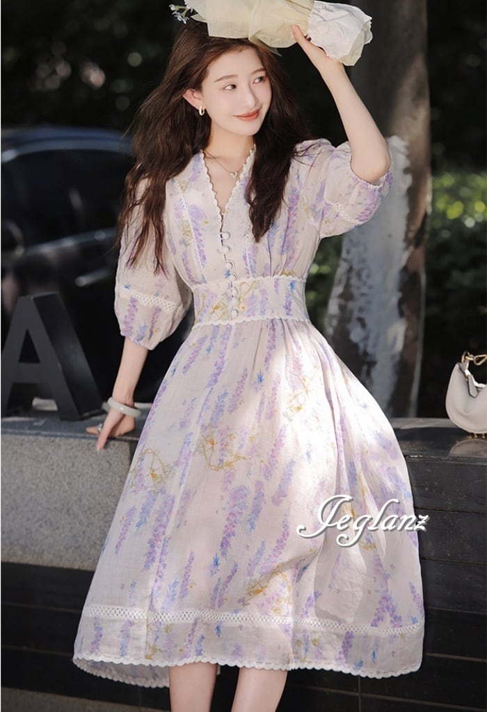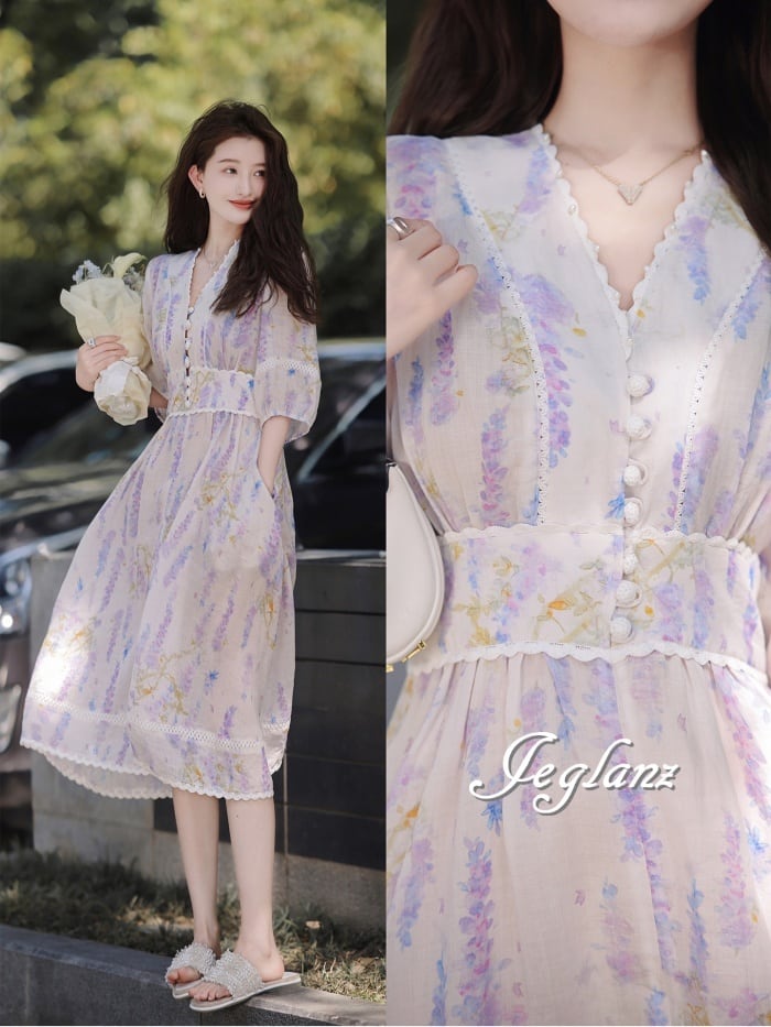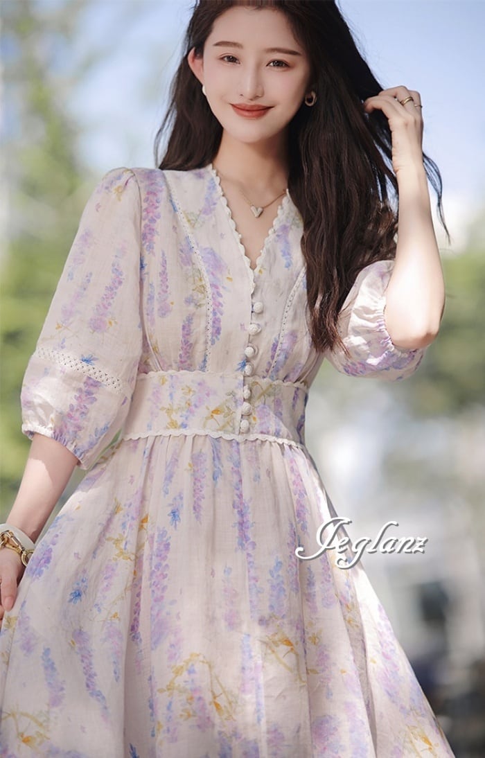 上品さと女性らしさを兼ね備えた切替ワンピースドレス