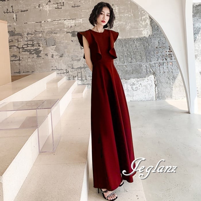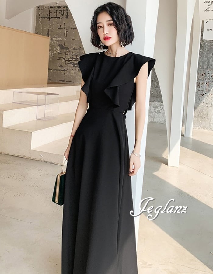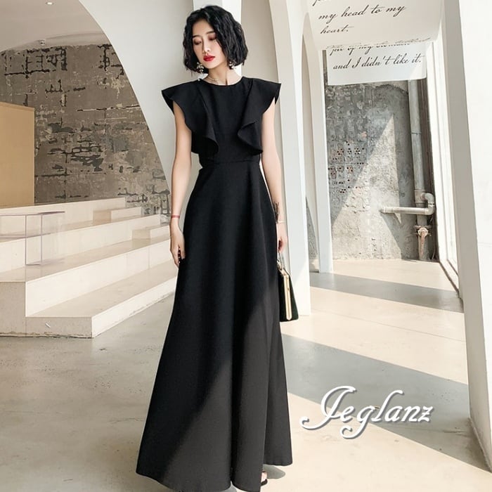 パーティ イブニングドレス パワショル カットアウト 肩フリル 肌見せ 2色(M2816)ζ
