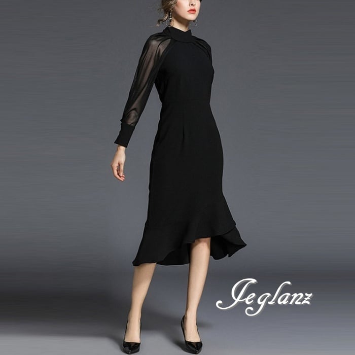 上品 ワンピース ドレス ハイネック 肌透け フォーマル 大人 シック(M3079)ζ