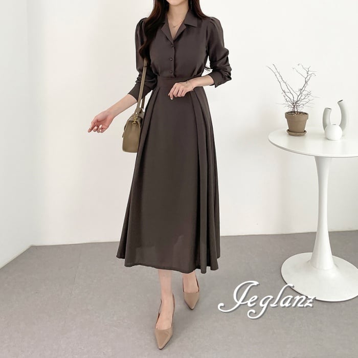 オープンカラー ワンピース ドレス タック入り きれいめ シンプル派 3色 (M4374)γα