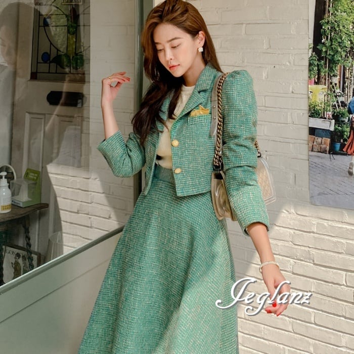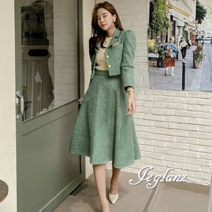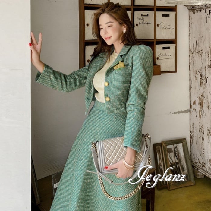 セットアップ 2点 短め丈 ツイード ジャケット Aライン スカート 高見え (M4394)λ
