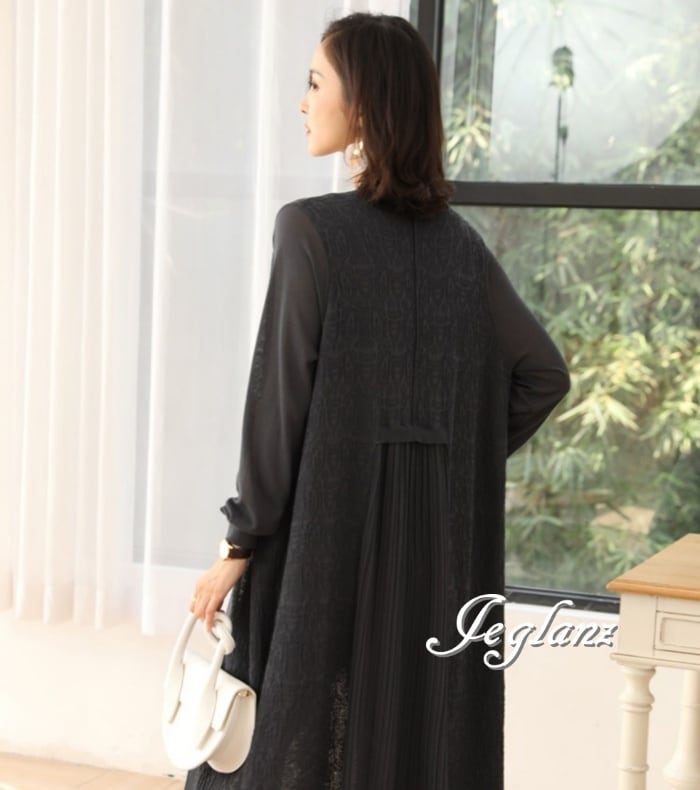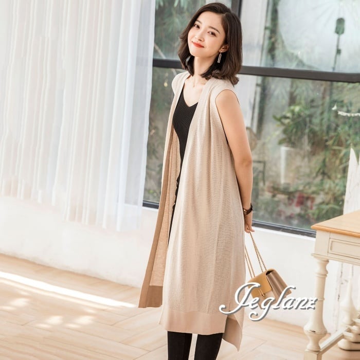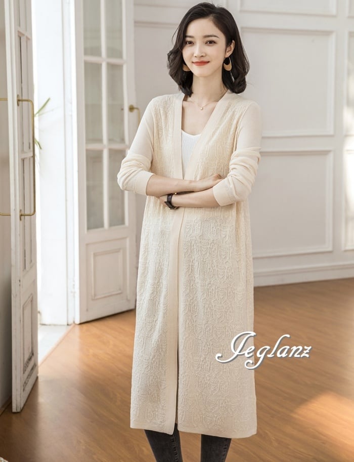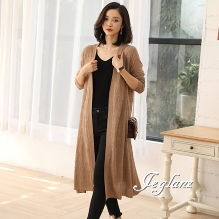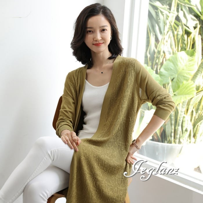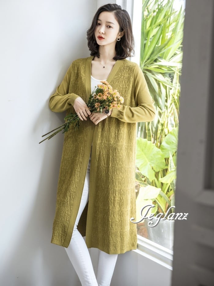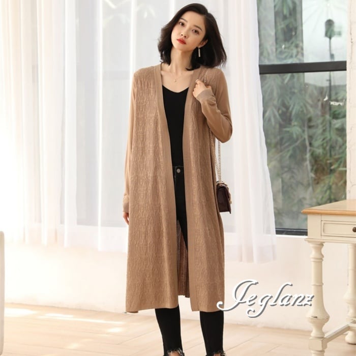 ロング丈 ニット 切替 カーディガン エンボス加工 ノーボタン 6色 ♪(M4451)τ