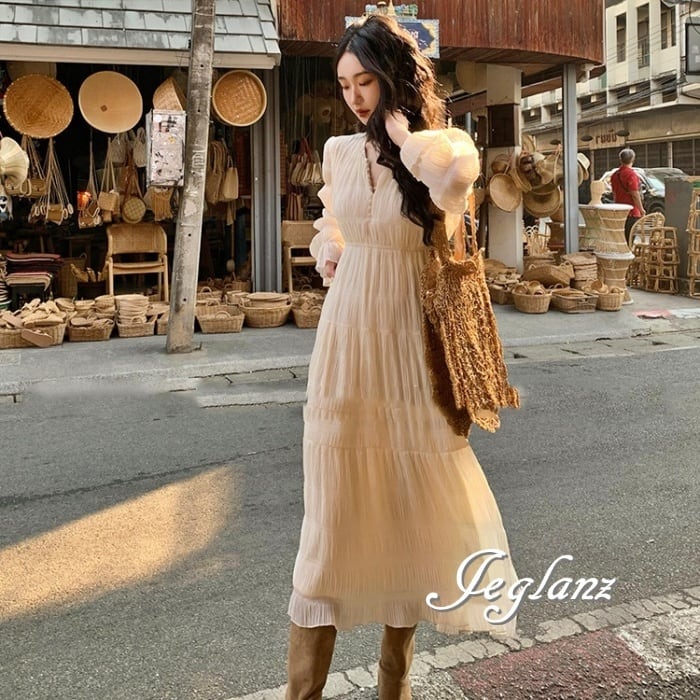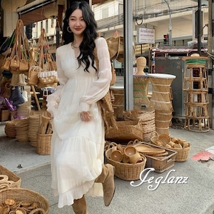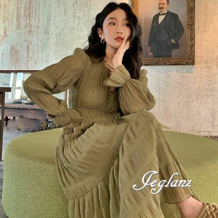 2色 ロング丈 ティアード ワンピース エンボス加工 肌透け フェミニン( M4496)γα