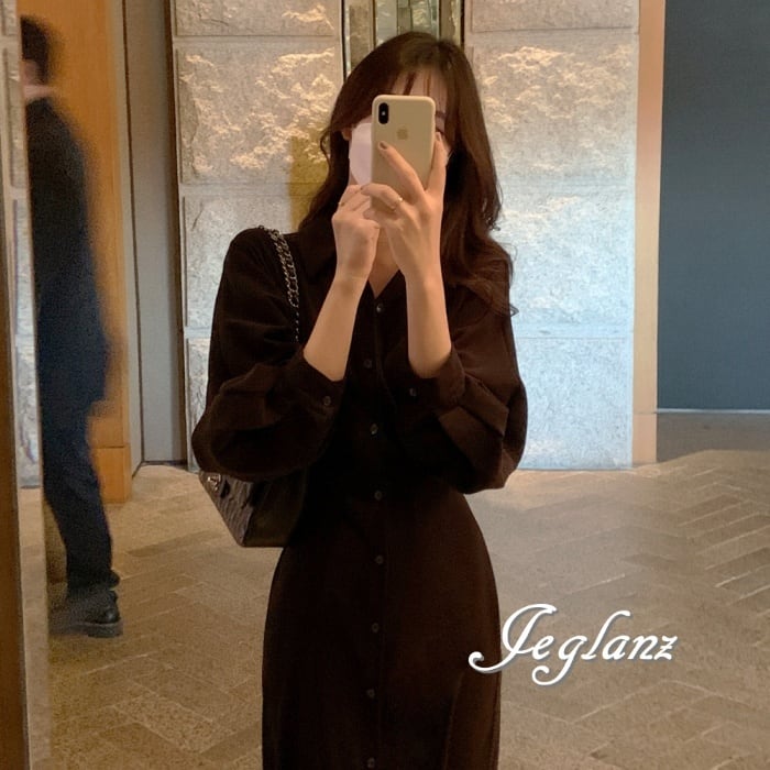 3色 ロング丈 シャツ ワンピース 紐ベルト きれいめ シンプル派(M4597)γα