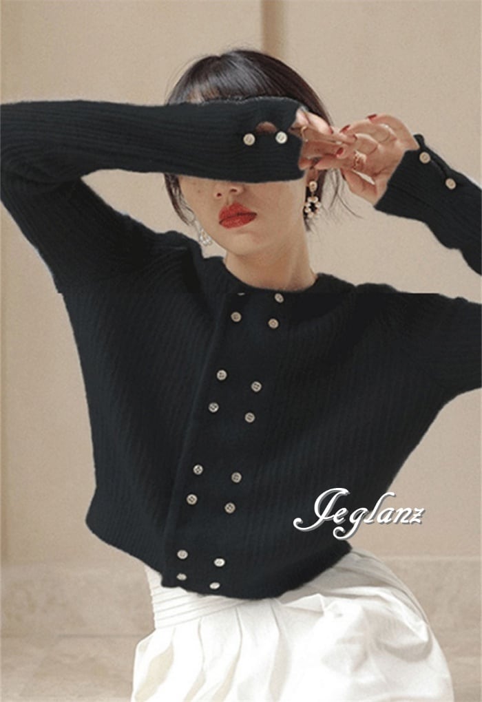 9色 ニット カーディガン ボタン トリム きれいめ シンプル派 ♪(M4660)σ,ς*