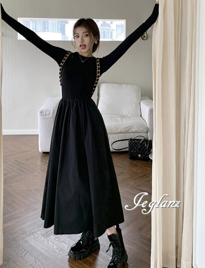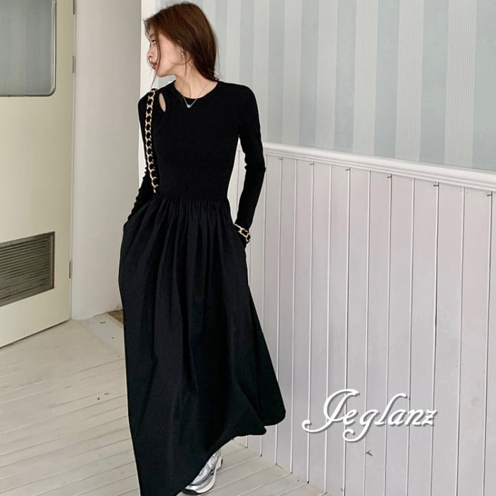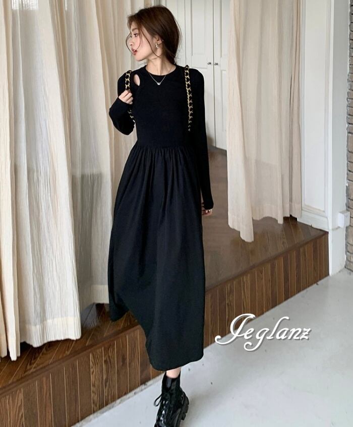 デザイン ワンピース ドレス 切替 ニット きれいめ シンプル派 ♪(M4671)γ