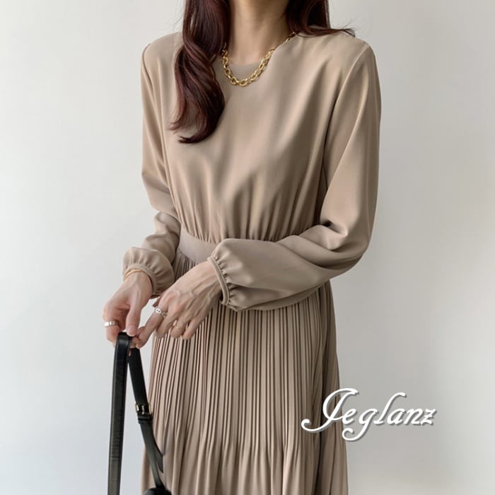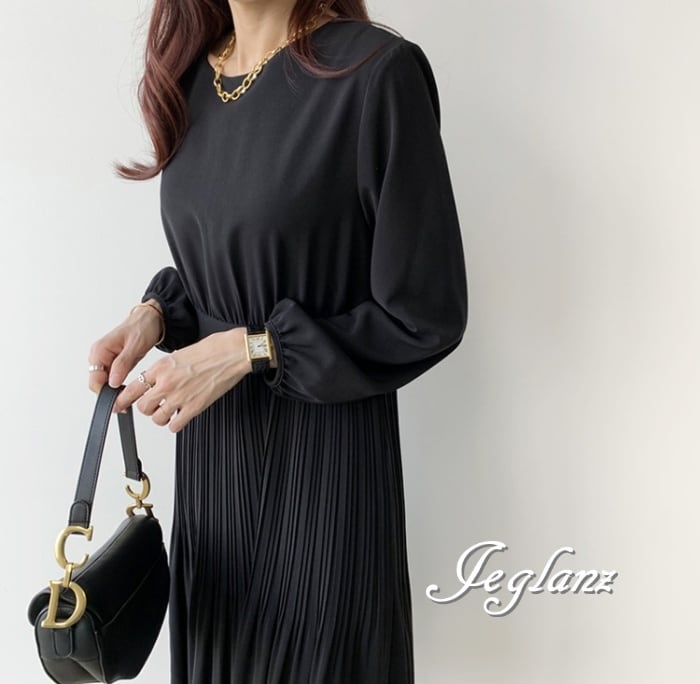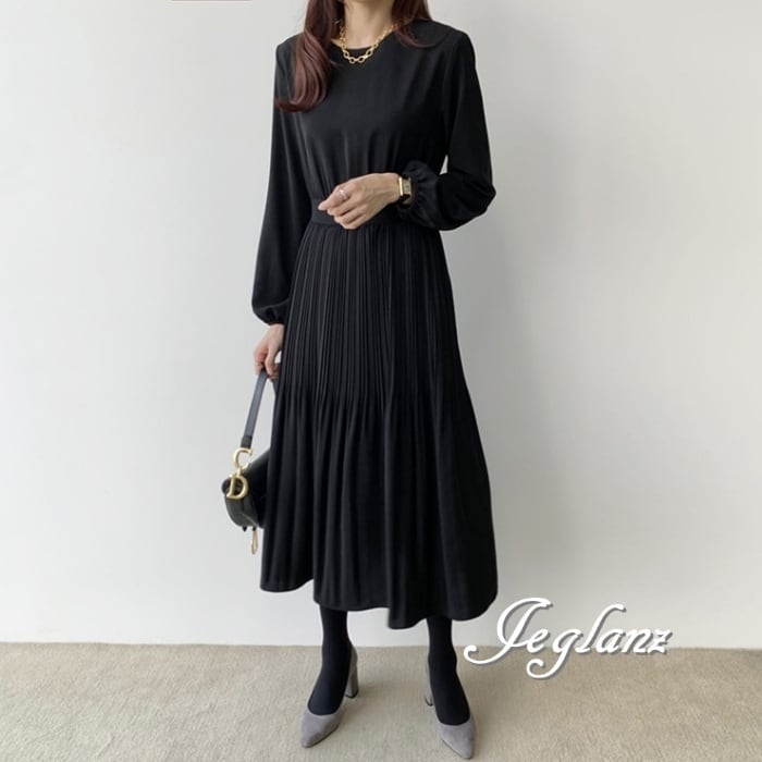 4色 ロング丈 ワンピース ドレス 切替 プリーツ きれいめ シンプル派 ♪(M4686)γ