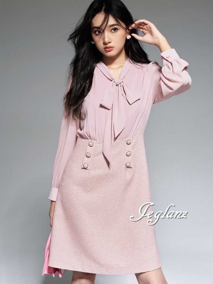 フェイクレイヤードのボウタイワンピースドレス