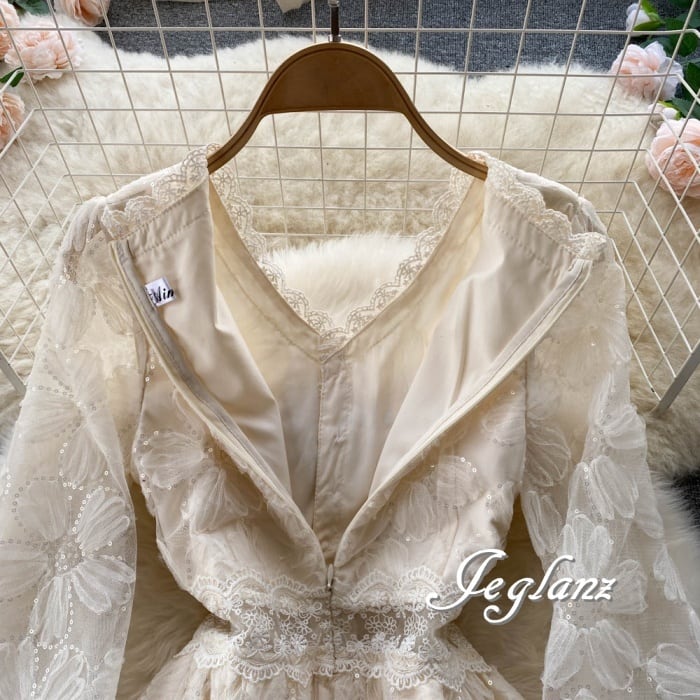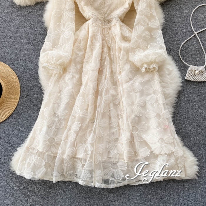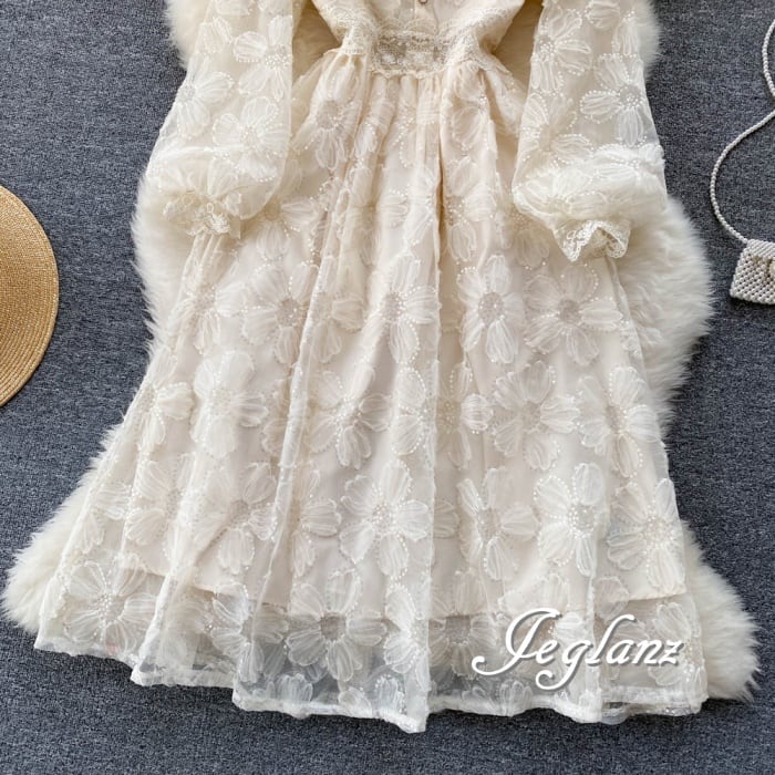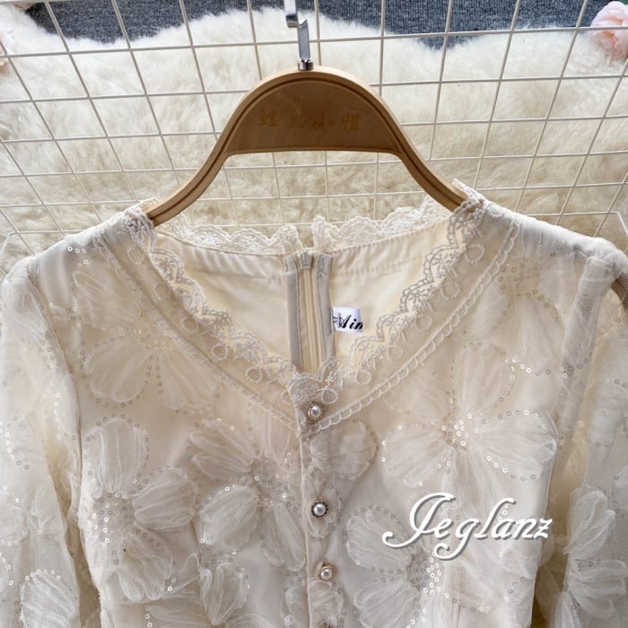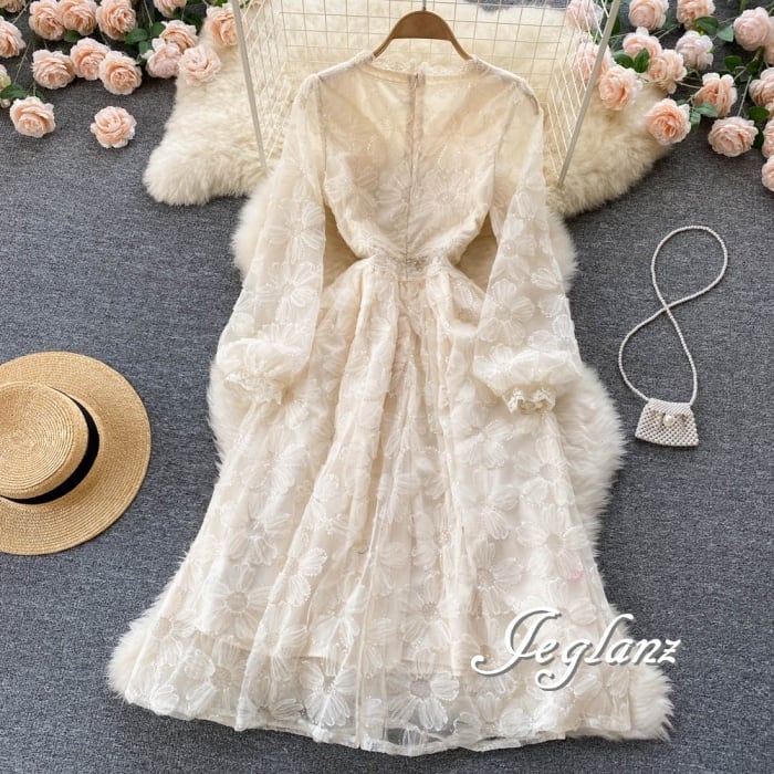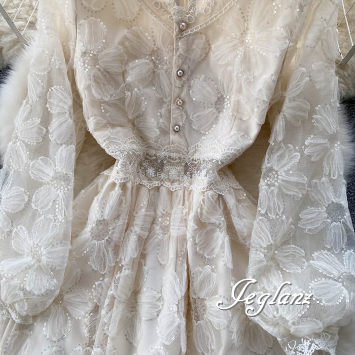 花 モチーフ ワンピース ドレス 透け感 パール ボタン 高見え ♪(M4792)γα