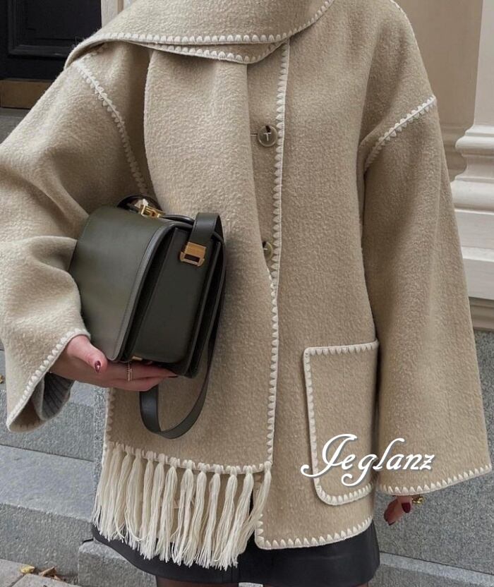 セットアップ 2点 バイカラー マフラー ニット コート ジャケット トリミング 4色 ♪(M4831)μ