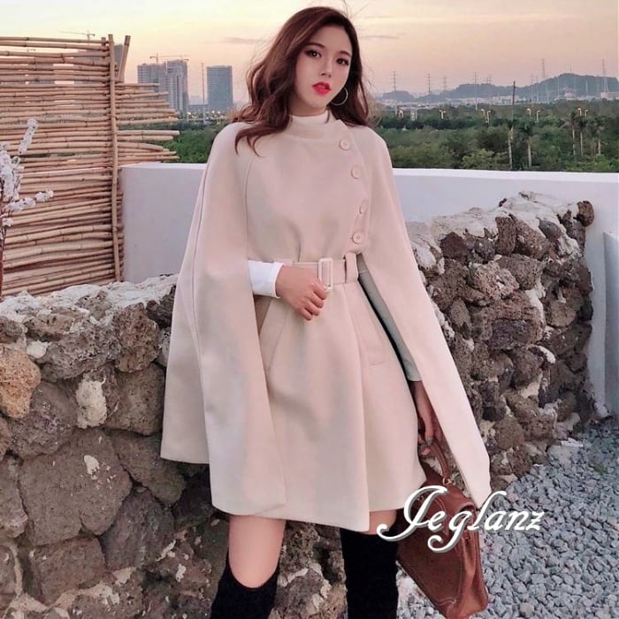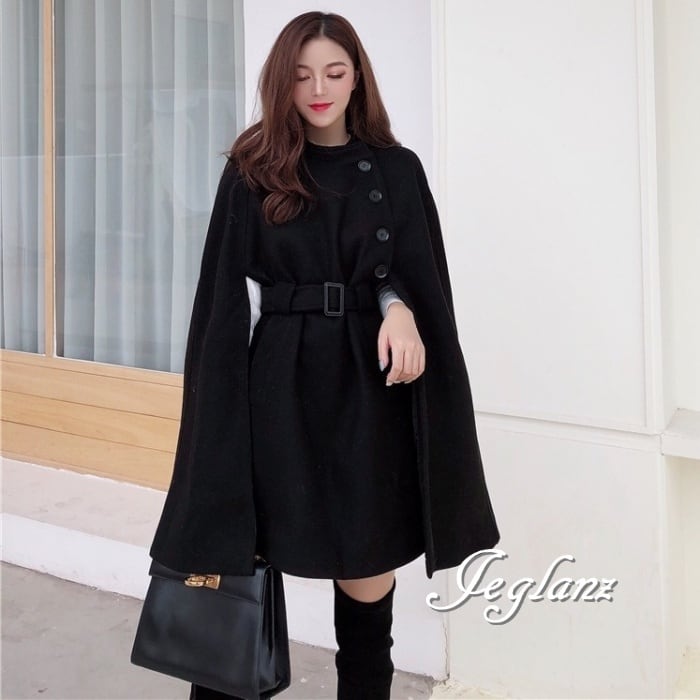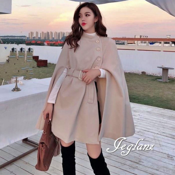 2色 ケープ コート ポンチョ マント ミディアム丈 エレガンス ♪ (M4879)υ