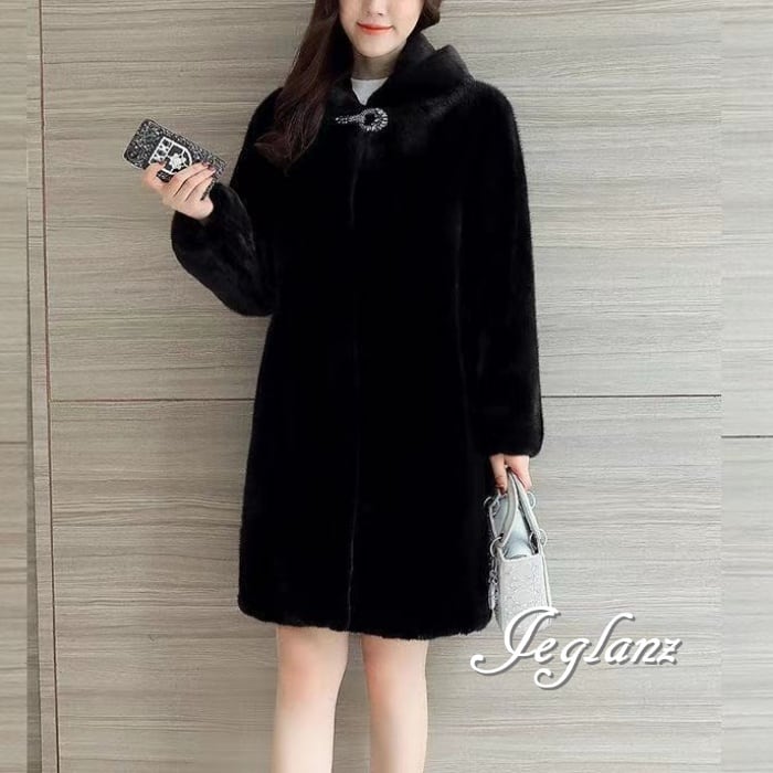 2色 ファー コート エコファー アウター フード付き エレガンス 高見え (M4912)φ