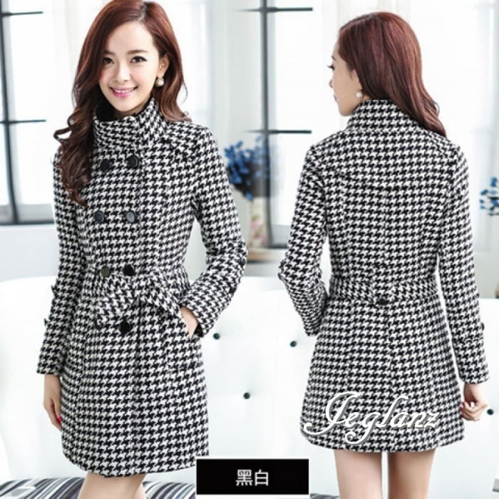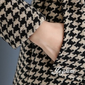 2色 ニット コート ピーコート 千鳥格子 配色 ダブルブレスト 共ベルト (M4915)★ τ
