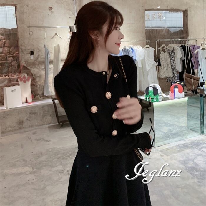 セットアップ 2点 ニット カーディガン ゴールドボタン スカート 高見え(M4922)μ