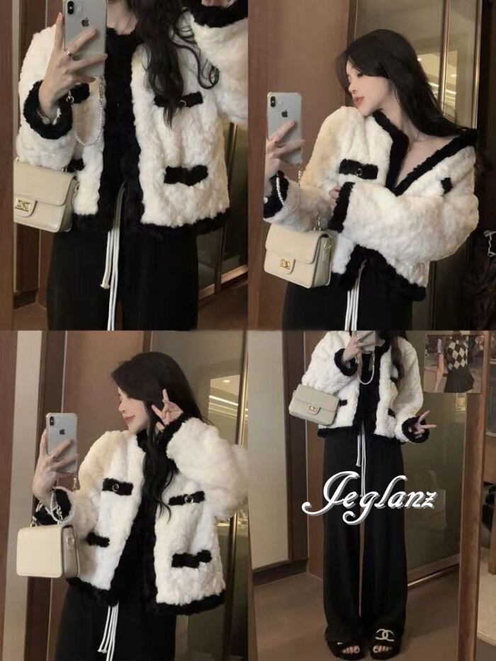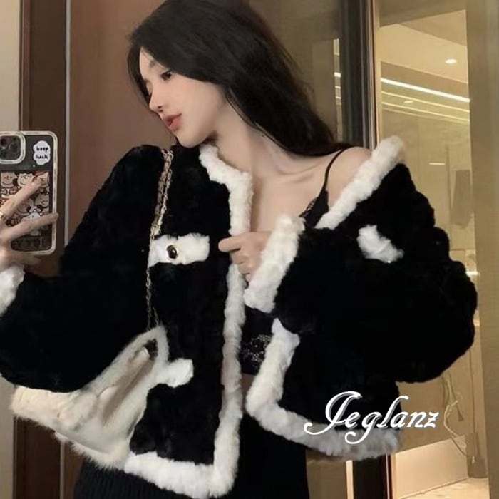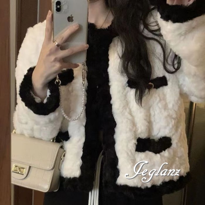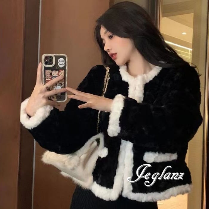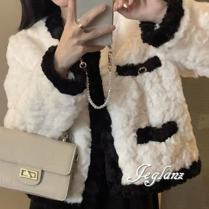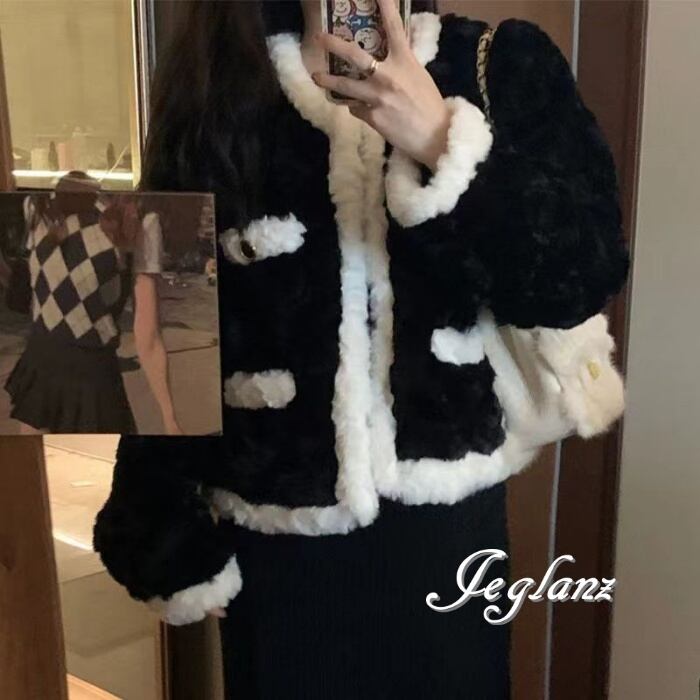 2色 ファー コート エコファー 短め丈 ジャケット 配色 リッチ感(M4970)φ