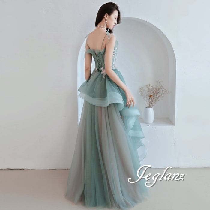 パーティ ドレス ボリューム チュール 背中 編み上げ 長袖/袖なし (M5047)ζ