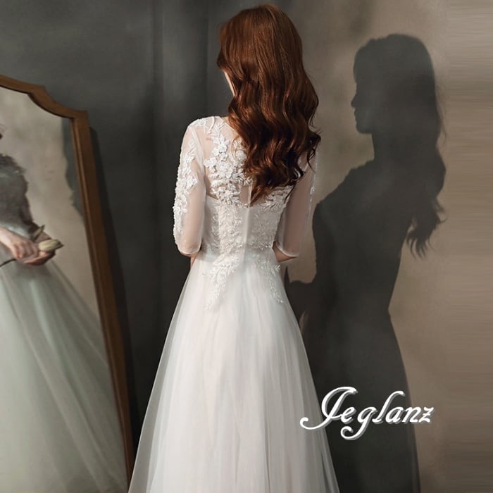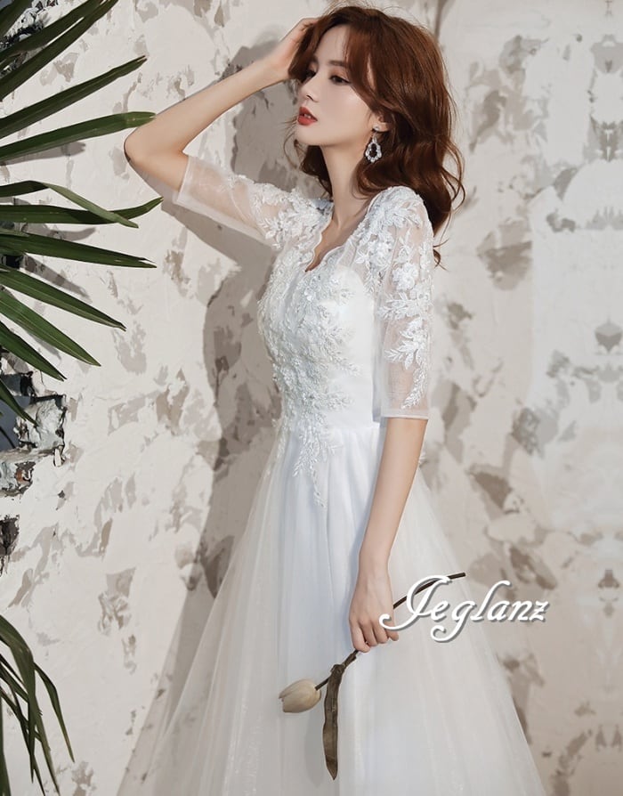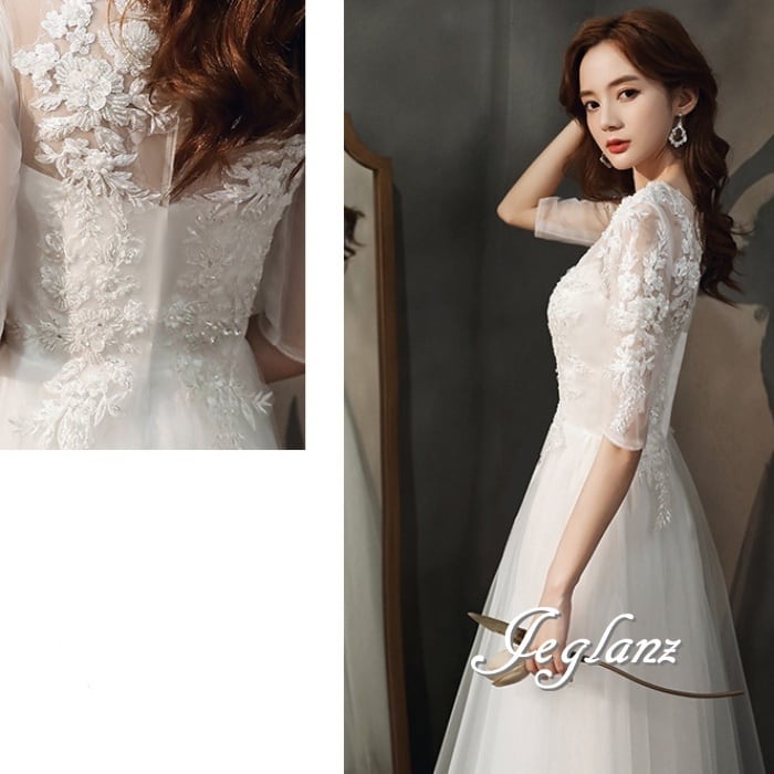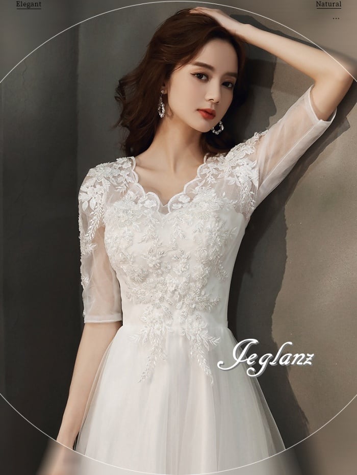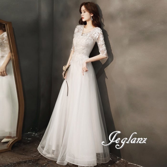 気品 パーティ イブニングドレス レーシー モチーフ 透け感 5分袖 2色(M5049)ζ