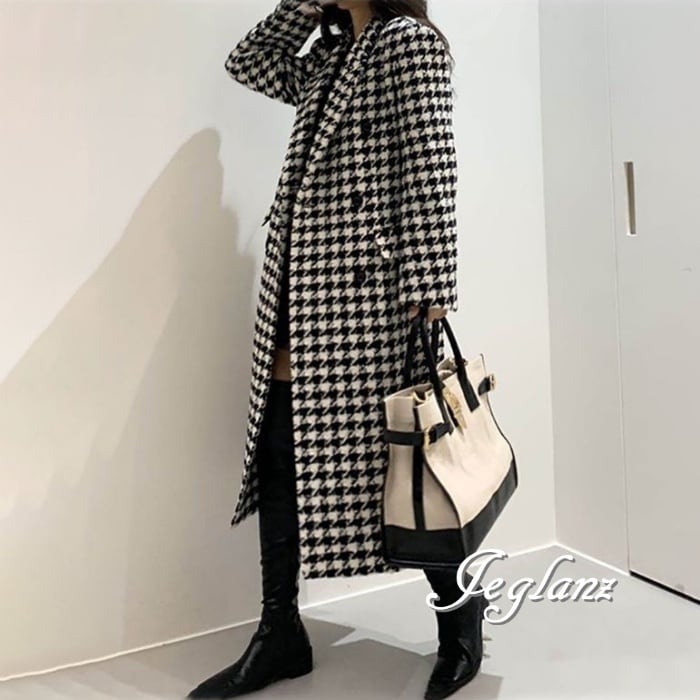 ニット ロングコート チェスターコート 千鳥格子 ダブルブレスト ♪(M5108)τ