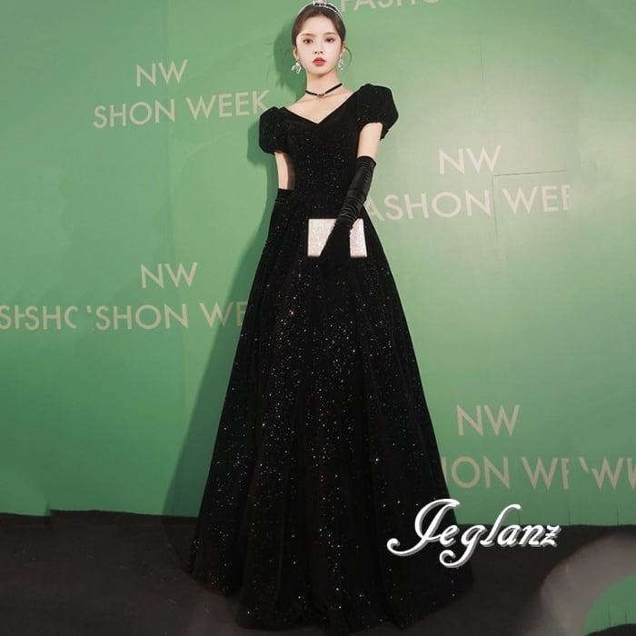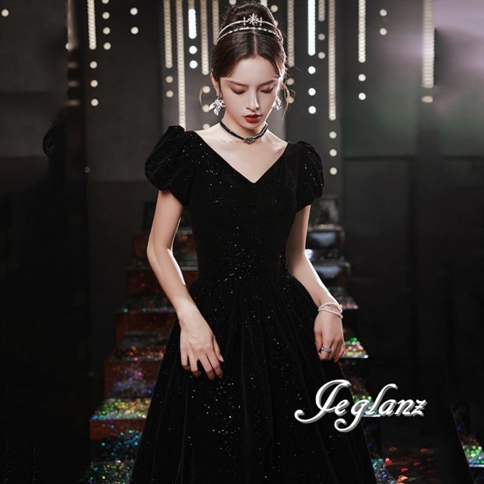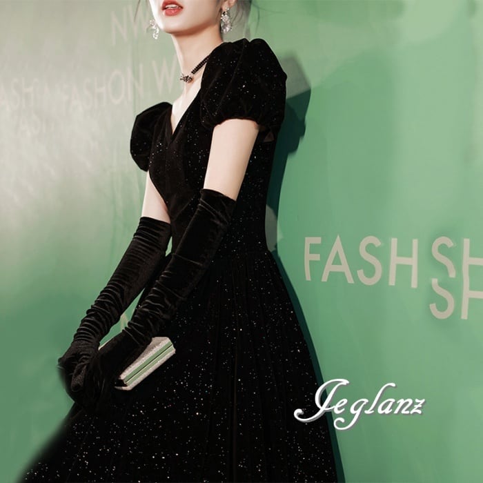 ベルベット調 イブニング カラードレス 背中 編み上げ ラメ入り(M5124)π