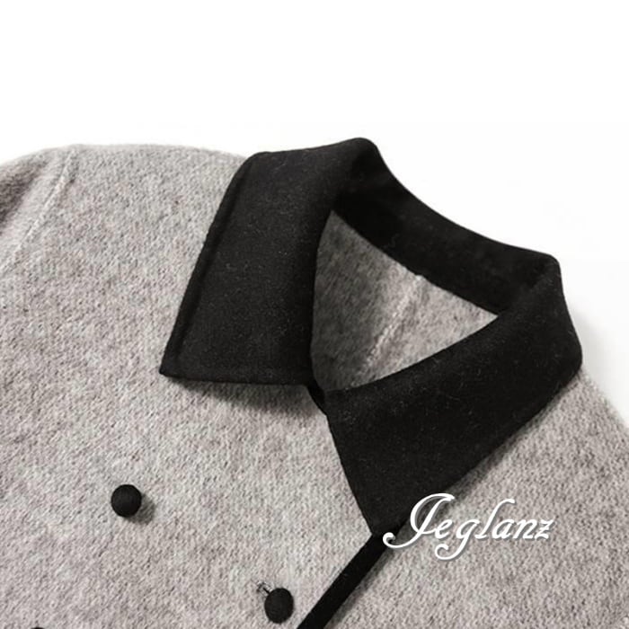 ハーフ丈 ニット コート バイカラー 襟付き ポケット きれいめ(M5134)τ