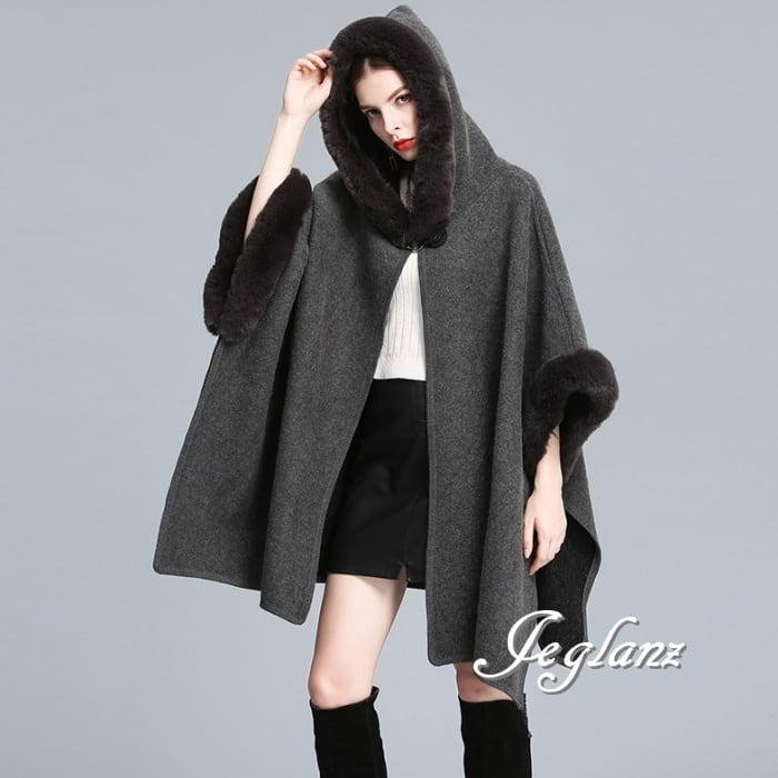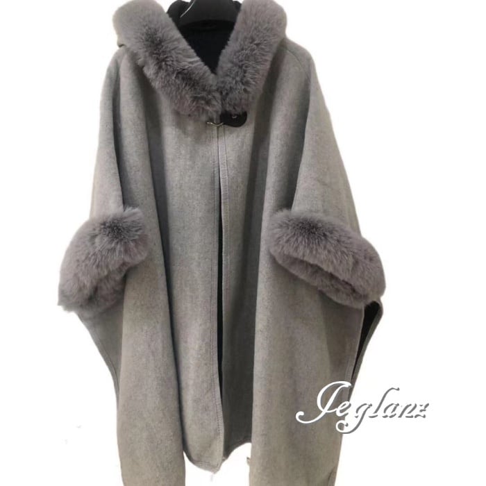 9色 ケープコート マントコート フード付き フェイクファー エレ派(M5160)υ