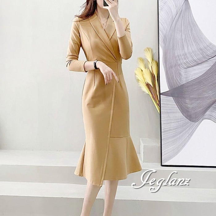 上品 フォーマル 切替 ワンピース マーメイドライン ミディ丈 2色 ♪(M5254)ζ