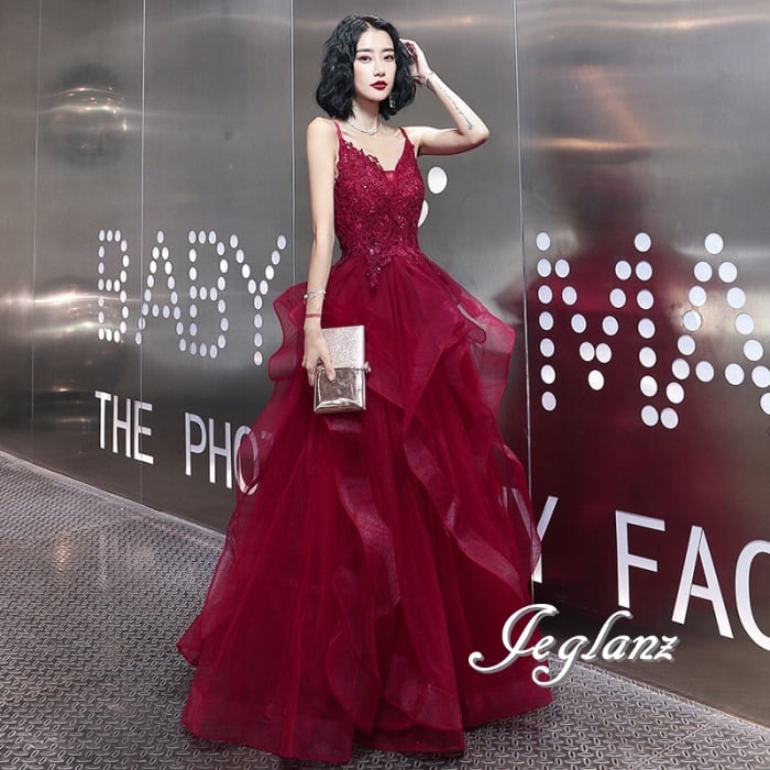 パーティ イブニングドレス 編み上げ ラッフルフリル ボリューム チュール 3色(M5384)ζ