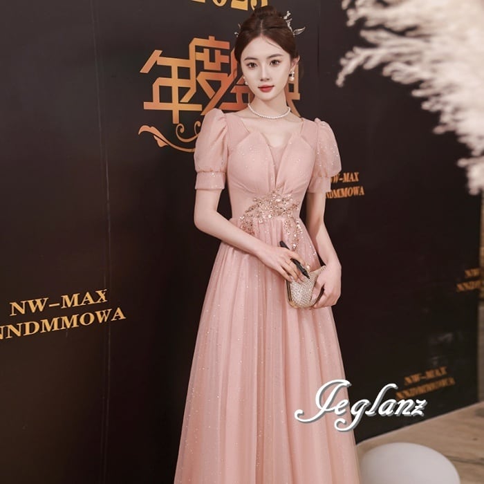 パーティ イブニングドレス 背中 編み上げ キラキラ 光沢感 3色(M5385)ζ