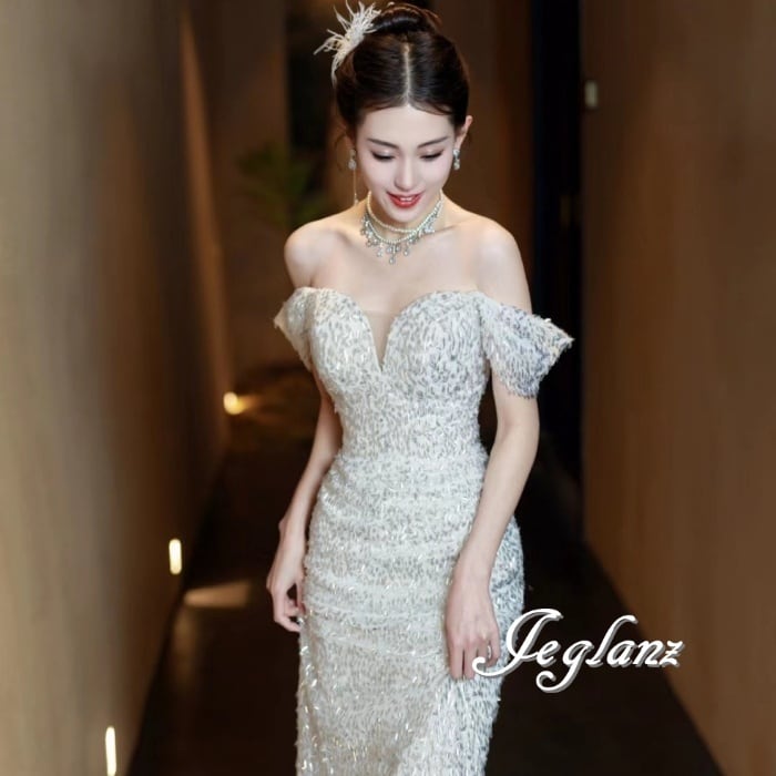 美ライン パーティ イブニングドレス オフショルダー マーメイドライン ♪ ( M5510)ζ