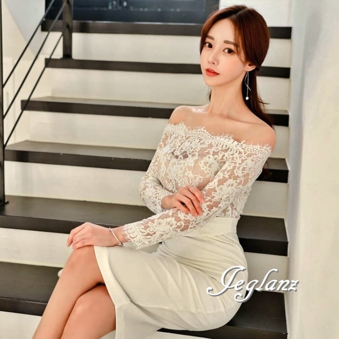 2色 パーティドレス ワンピース 異素材 オフショル タイト 大人シック(M5585)ζ