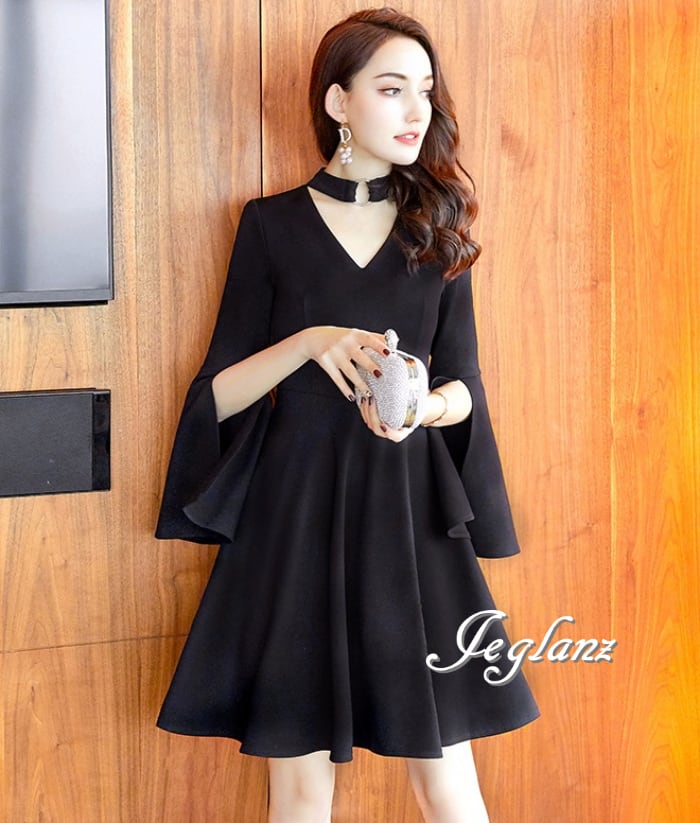 3色 パーティ ドレス ワンピース スリットスリープ チョーカー有/無(M5782)ζ