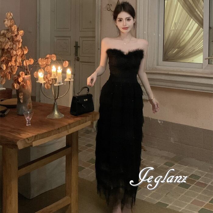 2色 パーティ 切替 レイヤード チュール ベアトップ フェザードレス 肌見せ ( M5962)ζ