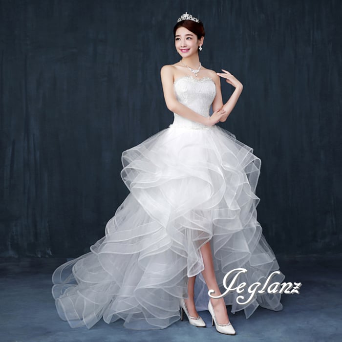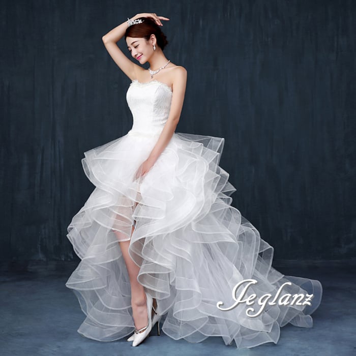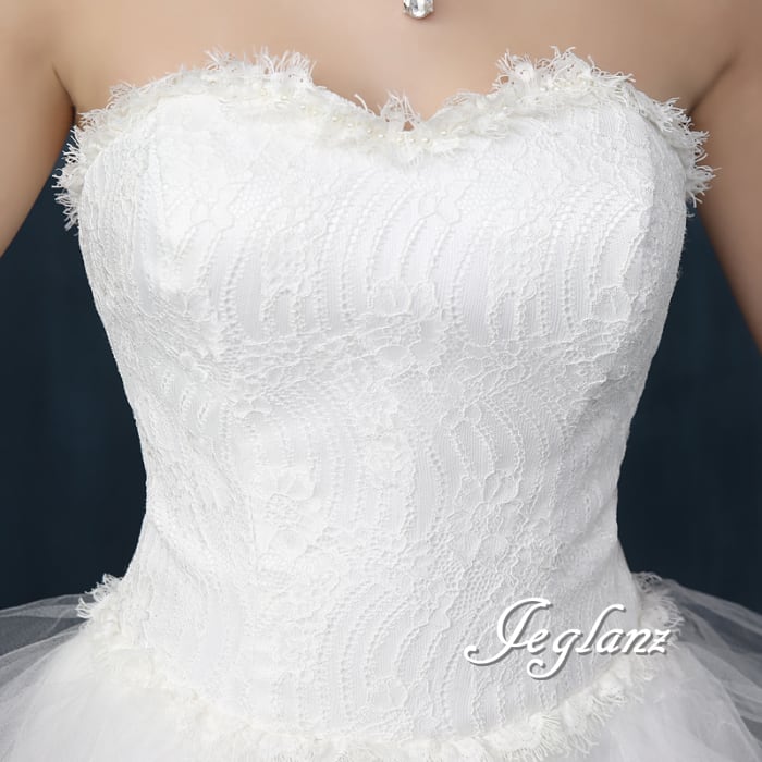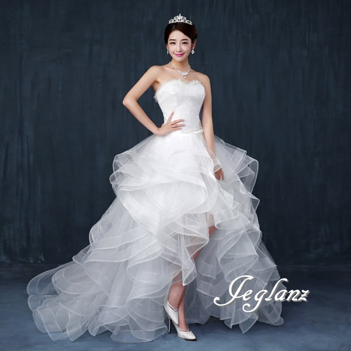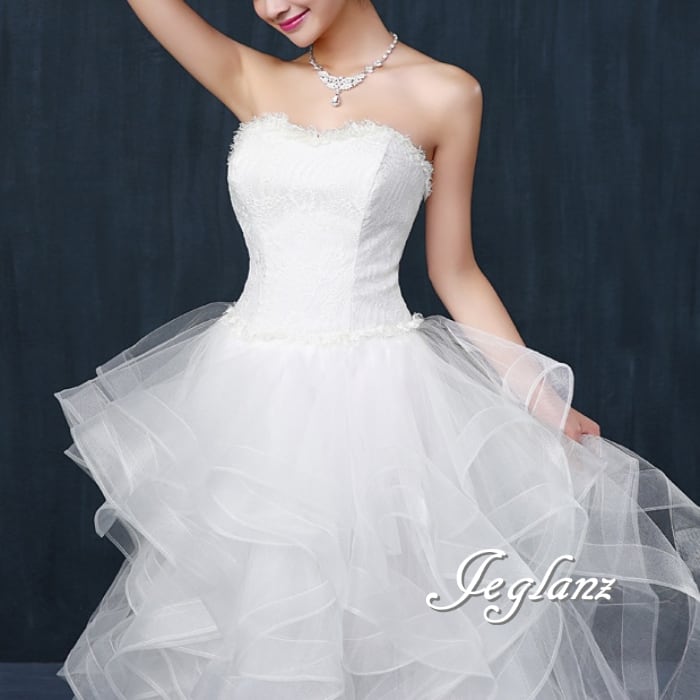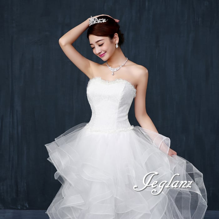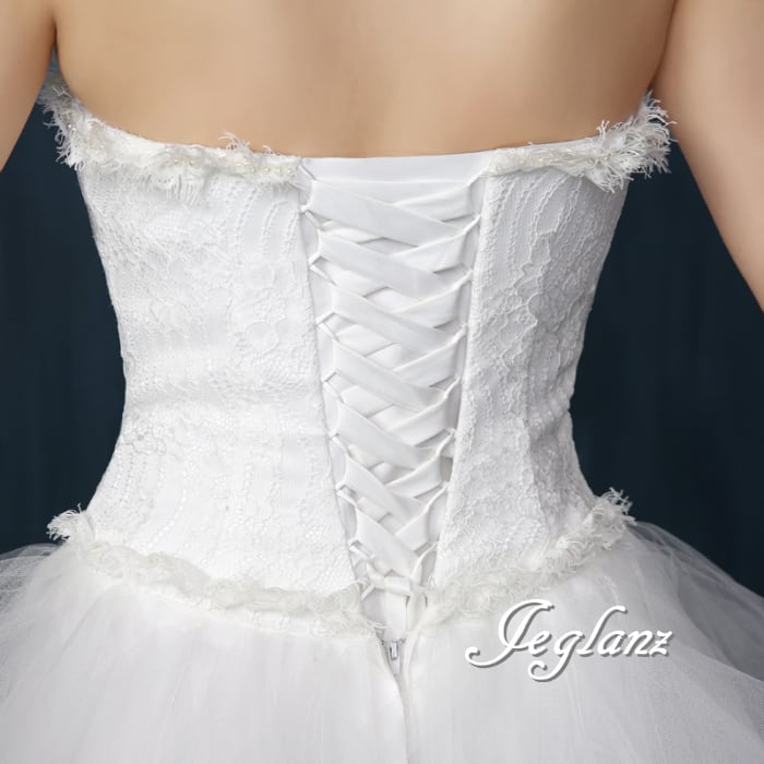 ウエディングドレス ベアトップ レイヤード フィッシュテール 背中 編み上げ (M5979)ο
