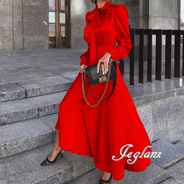 3色 ボウタイ ワンピース ドレス Aライン きれいめ 光沢 エレ派(M6009)ζ