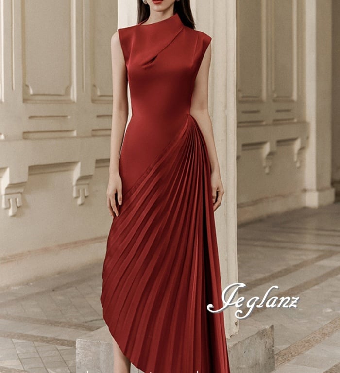 パーティ イブニングドレス デザイン 切替 プリーツ ノースリーブ アシメ (M6095)ζ