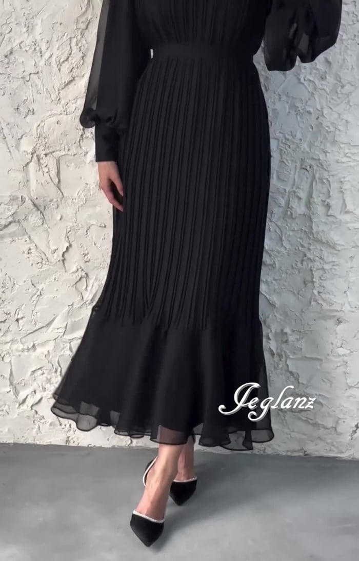 2色 プリーツ ワンピース ドレス 切替 モックネック 細見え (M6113)γ