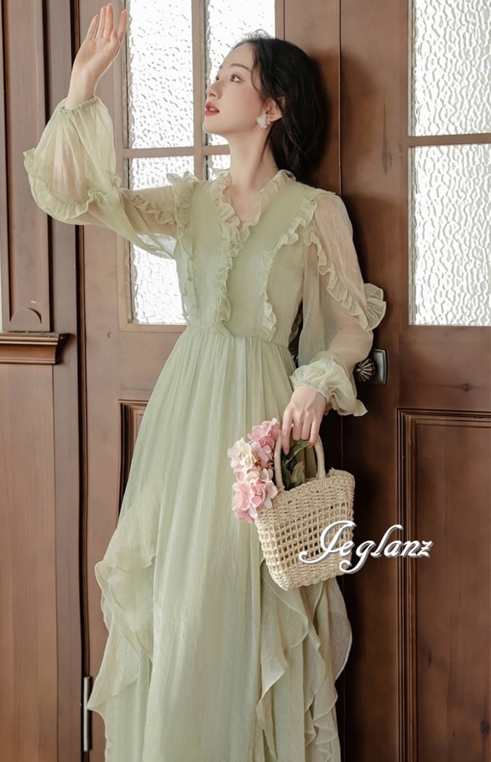 パーティドレス ワンピース 切替 ボリュームフリル 肌透け(M6137)★ ζ
