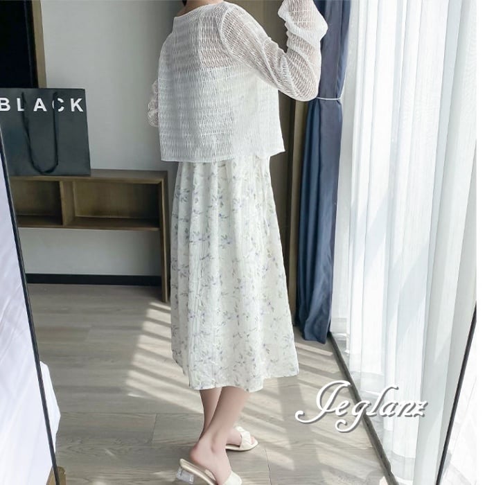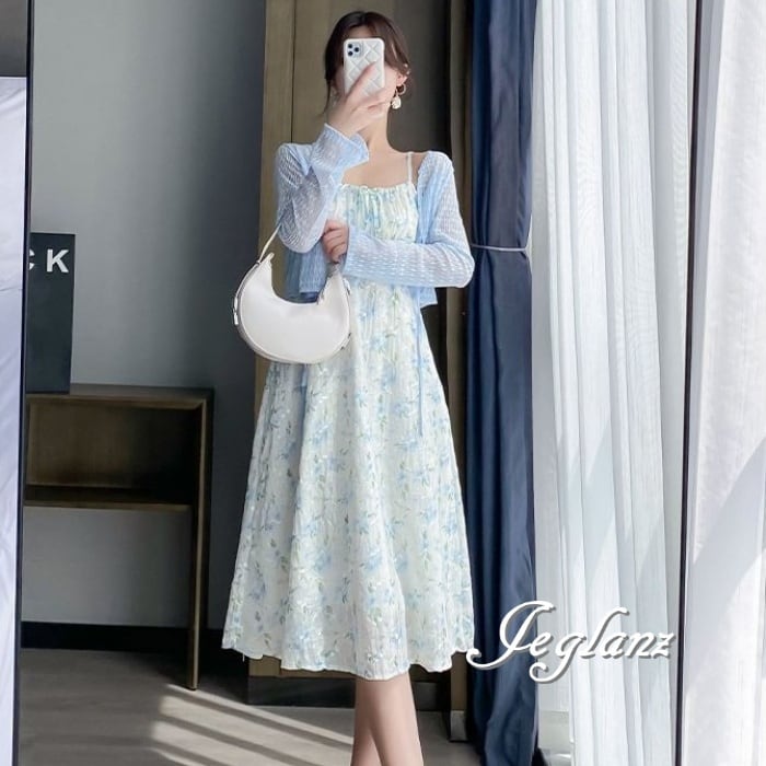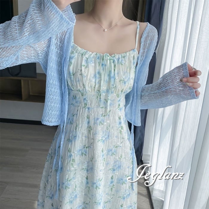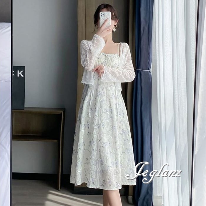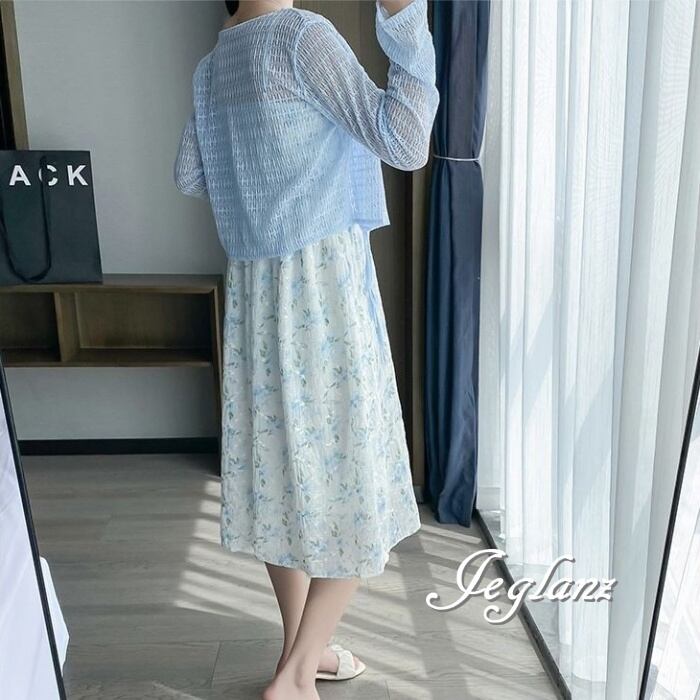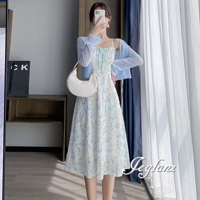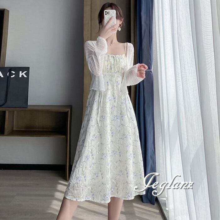 セットアップ 2点 透け感 カーディガン 花柄 キャミ ワンピース 3色(M6157)ικ