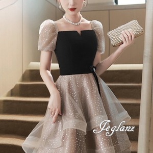 2色 パーティイブニングドレス 異素材 ボリューム チュール ラメ入り 光沢感 (M6190)ζ
