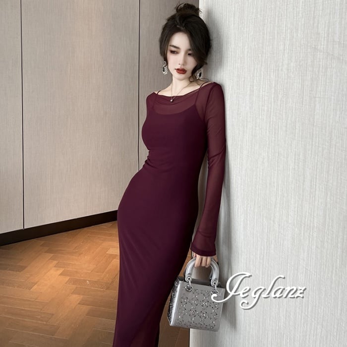 セットアップ 2点 シアー ワンピース キャミ ワンピース 2色(M6246)ζ