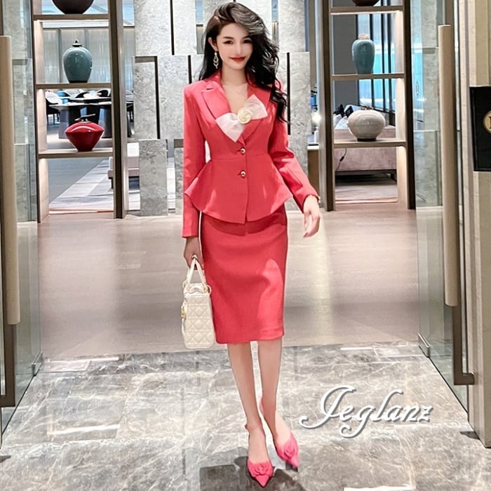 高級感漂うエレガントな長袖ジャケット&切替キャミワンピのセットアップ