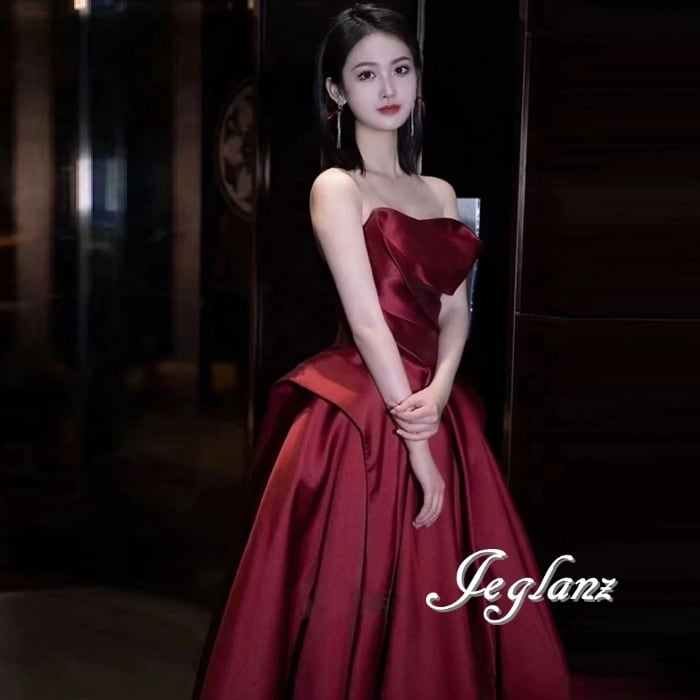 サテン ウエディング カラードレス ベアトップ 光沢感 クラシカル(M6354)π