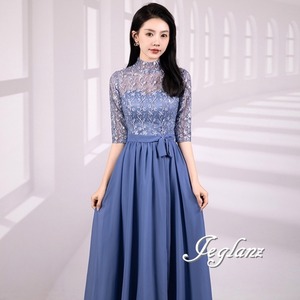 4色 パーティ ドレス ワンピース モックネック 切替 レース シアー感 5分袖 ♪ (M6358)ζ☆