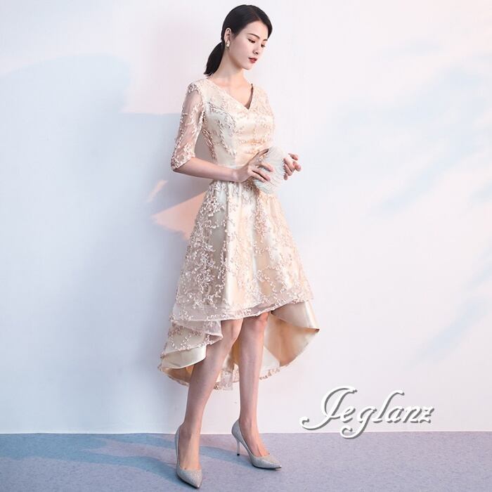 5色 華やか パーティドレス ワンピース モチーフ フィッシュテール 7分袖 ♪(M6360)ζ
