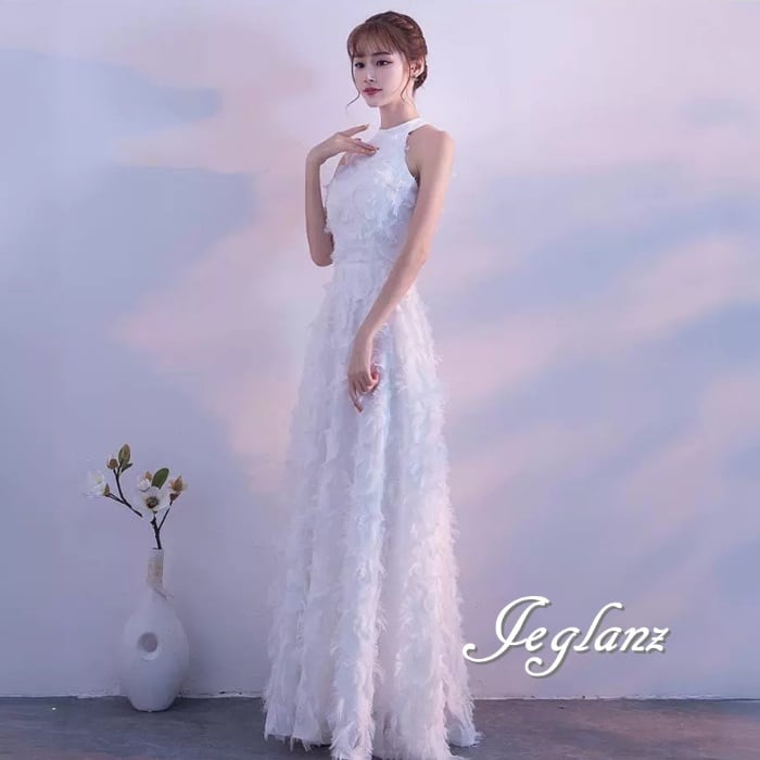 5色 パーティ イブニングドレス フェザー アメリカンスリーブ ♪(M6685)ζ