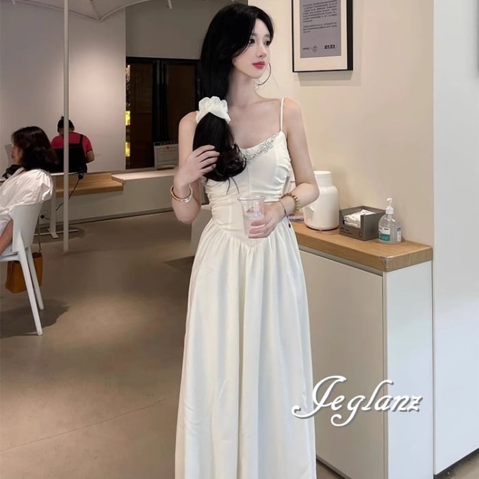 ビジュー付き パーティ キャミワンピース ドレス きれいめ マキシ( M7177)ζ