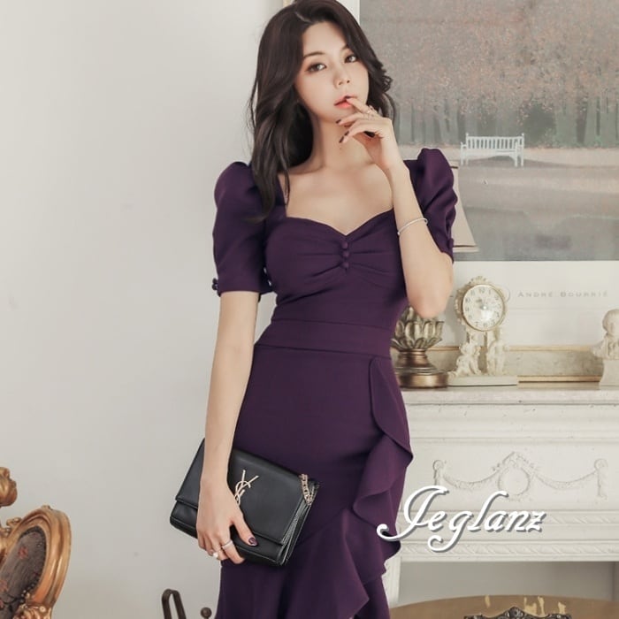 ラッフルフリルが華やかなワンピースドレス